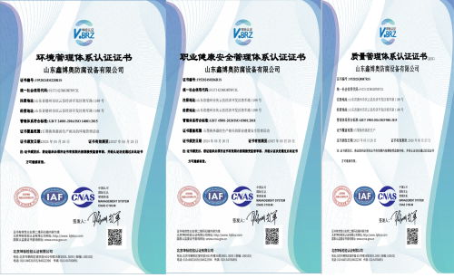 通過了ISO9001質量管理體系、ISO14001環境管理體系、ISO45001職業健康安全管理體系三體系認證。